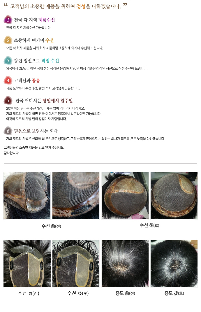 가발 스킨 교체와 패치 코팅 수선으로 새것처럼 복원!